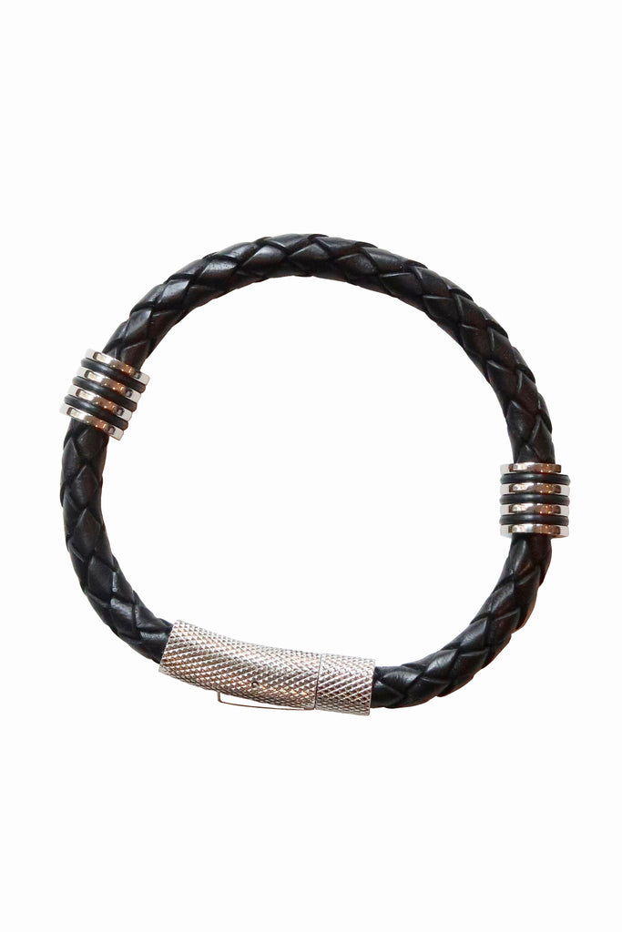 MATERIALS: 6mm braided genuine leather; stainless steel spacer beads; stainless steel clasp
